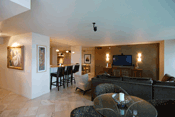 Venetian plaster walls, Travertine tile laid on a diagonal, Custom Granite Slab Counter Tops, Remotely powered window coverings, pre-wired surround and whole house music system,